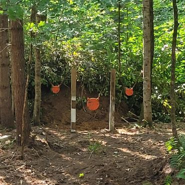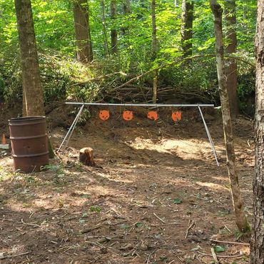 We have steel targets and gongs, self-healing torso's and targets, stands for paper targets, and a rotating "Texas" star. The range is equipped with a loading table and shooting table. Paper targets can be purchased at the range and/or you can bring your own. You can choose from various distances between 5 to 20 yards to shoot from. If you have a long gun, we have a short distance (50 yard) range as well. It is the shooters responsibility to bring their own eye and hearing protection. Ammunition is not provided by Thunder K Ranch but can be purchased here if you need it. We carry most of the popular cartridges (9mm, 40 S&W, 45 ACP, 223/5.56 Nato). If you need a specific quantity and cartridge, we can have that ready for you when you get here (we just need 14 days' notice to place the order - paid for in advance). You can book in advance or talk to us when you get here.